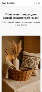 | AI-анализ | The portal Your_Comfort is an online catalog offering a selection of practical and high-quality items for a comfortable lifestyle. The website includes a variety of product categories such as men's backpacks, perfume-conditioners, and baking forms, all priced and available for purchase in the BYN currency. Users can add items to their cart and view their total cost, as well as provide their personal information for order placement. The catalog operates under the business name Your_Comfort, registered under the UNP 291471451 and located in Pinsk, Belarus, with contact information including an email address and physical address with specified work hours. The website complies with Belarusian legislation and offers delivery across the country. |