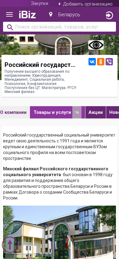 | Название / Заголовок | Российский государственный социальный университет Филиал в г. Минске - Получение высшего образования по направлениям: Юриспруденция, Менеджмент, Социальная работа, Психология, Конфликтология. Поступление без ЦТ. Магистратура. РГСУ Минский филиал.. 220107, Минск, , Народная, 21 |