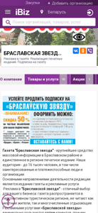 | AI-анализ | The website is the official site of the "Браславская звезда" (Braslav Star) newspaper in Belarus. It offers reclama services and the sale of printed publications, including subscriptions to the newspaper. The address of the company is 211969, Braслав, Savaya, 59. |