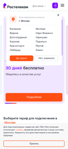 | Название / Заголовок | Скидка 100% на 30 дней | Ростелеком - официальный сайт для физ. лиц. Москве. Доступ в интернет, ТВ и телефонная связь. |