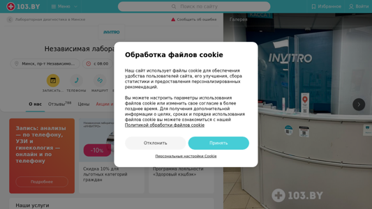 | SEO-описание | Независимая лаборатория ИНВИТРО Минск пр-т Независимости 181 – телефоны, время работы, отзывы и схема проезда в каталоге медицинского портала 103.by. |