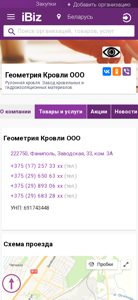 | AI-анализ | The web project "Geometria Krovli OOO - Roll Roofing. Factory of Roofing and Hydroisolation Materials" is located in Fanipol, Belarus, at the address Заводская, 33, ком. 3A. The company specializes in the production and sale of roofing and hydroisolation materials. The contact information for the organization includes multiple phone numbers: +375 (17) 257 33 xx, +375 (29) 650 63 xx, +375 (29) 893 06 xx, and +375 (29) 683 28 xx. The company's UNP number is 691743448. The website provides a map and directions for reaching the |