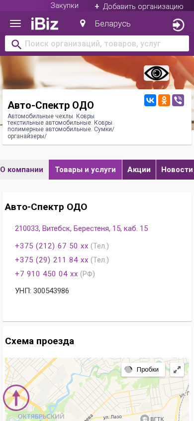 | Название / Заголовок | Авто-Спектр ОДО - Автомобильные чехлы. Ковры текстильные автомобильные. Ковры полимерные автомобильные. Сумки/органайзеры/. 210033, Витебск, , Берестеня, 15, каб. 15 |