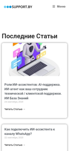 | AI-анализ | The web project "Blog Support.by" is a blog dedicated to hosting, server selection, and related topics. The homepage displays the latest articles in a list format, with each title serving as a link to the full article. The page also features a news section with the latest news from the hosting and technology world. Keywords associated with the project include 'latest articles', 'read more', 'switching tabs', 'home', 'blog', 'support', 'articles', and 'news'. The project is operated under the domain blog.support.by. |