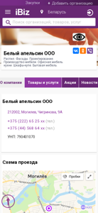 | AI-анализ | This website is for Beliy Apelsin OOO, a company located in Moгилев, Belarus, at Chiгринова 9A. They offer services and products related to furniture production, including office furniture, kitchens, wardrobes, and household items. The website provides contact information with two phone numbers and the company's UNP number (790401070) for identification purposes. The business operates from Monday to Friday, 9:00 AM to 6:00 PM without lunch breaks, and on Saturdays from 11:00 AM to 4:00 PM. There is a map with directions to the company's location and a section for company news and announcements. The website is categorized under 'Furniture production' in the iBiz search engine. |