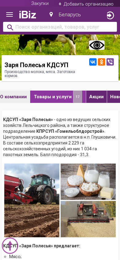 | AI-анализ | The website is for the agricultural cooperative "Zarya Polesia KDSUP" located in the village of Gulshkovichi, Lelchitsky district, Belarus. The cooperative specializes in milk and meat production, as well as corn collection. The website provides information about the company, its products, and contact details, including phone numbers and a map for directions. The cooperative operates 2,229 hectares of agricultural land, with 1,034 hectares used for farming. The website also mentions the use of modern agricultural equipment for soil processing and the goal of increasing production and improving quality, while offering competitive prices and individual customer service. |