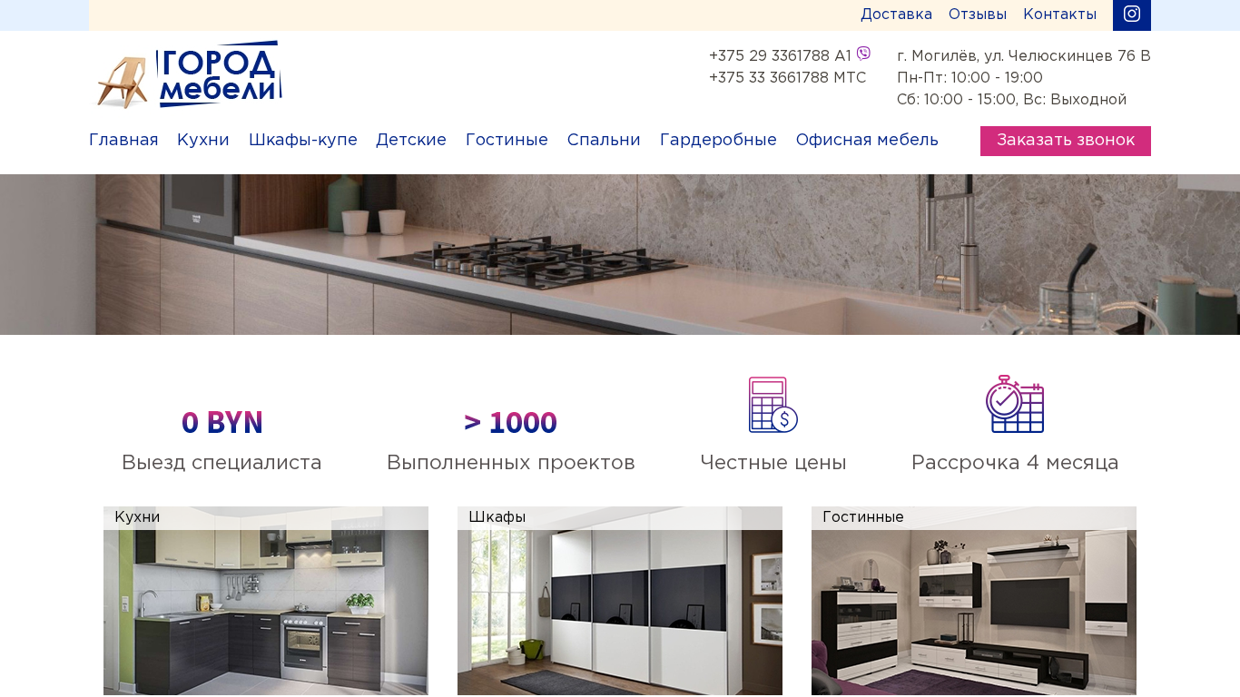 | SEO-описание | Изготовление корпусной мебели под заказ. Кухни, шкафы купе, гостиные и спальные комнаты в Могилёве и области. Рассрочка. |