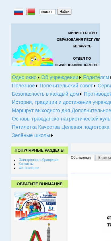 | Название / Заголовок | Ясли сад №1 г.Каменца |