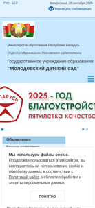 | AI-анализ | --- This website is titled "Молодовский детский сад" (Molodovsky Detsky Sad), which translates to "Molodovsky Children's Garden" in English. The description provides no further information about the content or purpose of the site. The top keywords include "образования" (education), "2025", "детский сад" (children's garden), "сайта" (website), and various place names, suggesting that this is a website for a children's educational institution located in Molodovo, Ivanovo, Belarus. The use of the words "учреждении" (institution) and "педагогический" (pedagogical) further supports this assumption. No contact information or links are provided in the given data. |