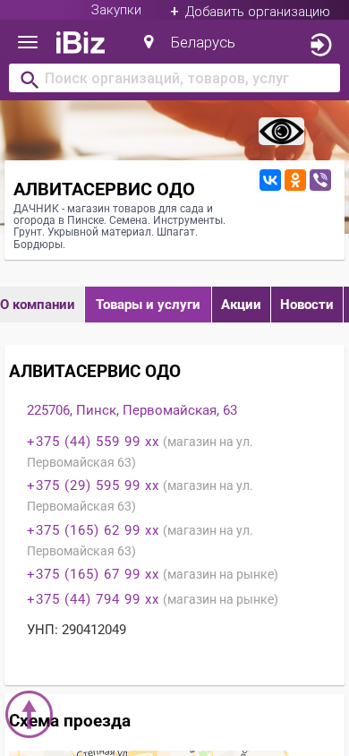| Название / Заголовок | АЛВИТАСЕРВИС ОДО - ДАЧНИК - магазин товаров для сада и огорода в Пинске. Семена. Инструменты. Грунт. Укрывной материал. Шпагат. Бордюры. . 225706, Пинск, , Первомайская, 63 |