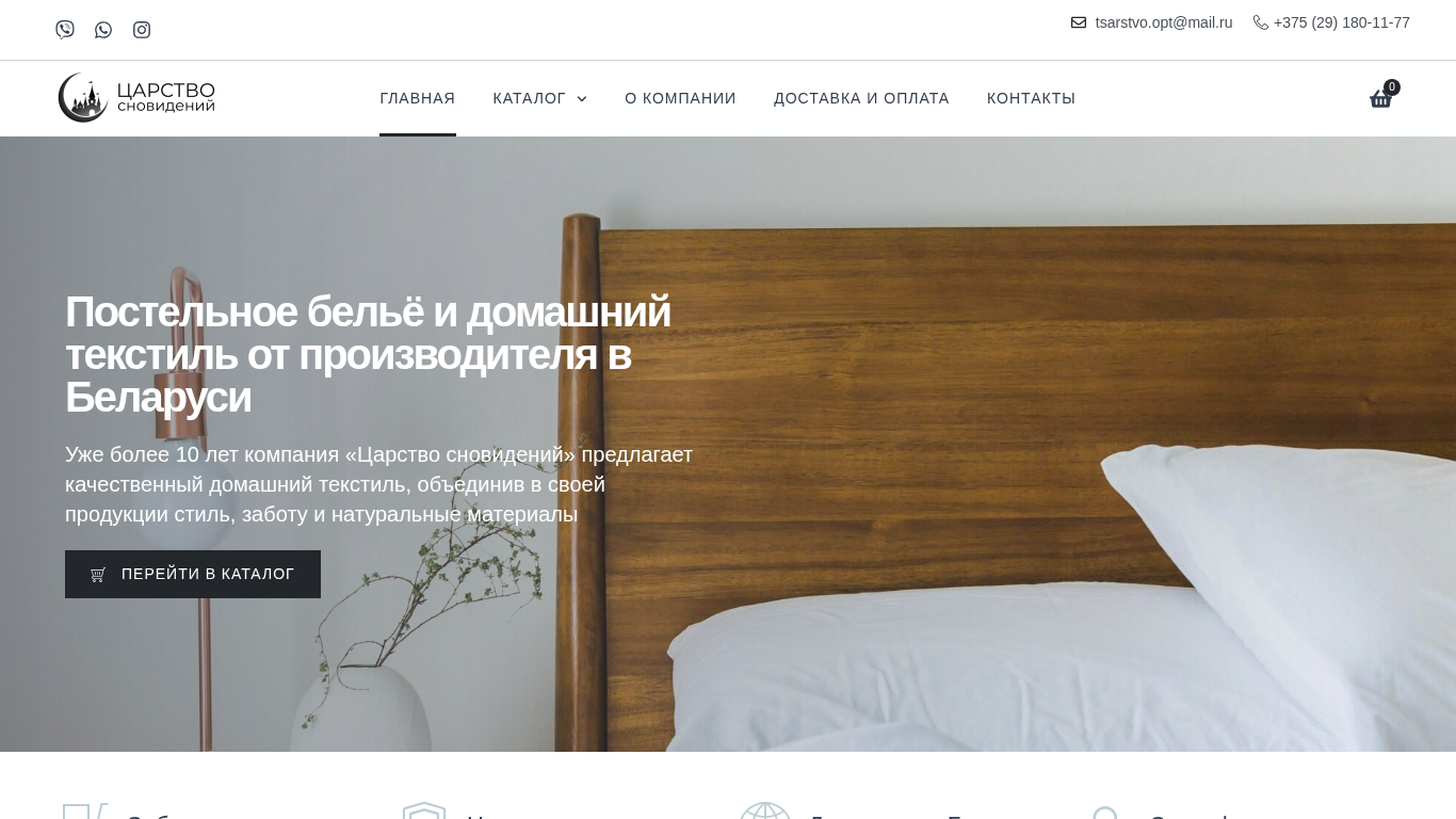 | SEO-описание | Купить постельное бельё, подушки, пледы и текстиль от производителя в Беларуси. Компания «Царство сновидений» — натуральные ткани, доступные цены, доставка по Беларуси и России. Собственное производство, 10 лет качества и уюта |