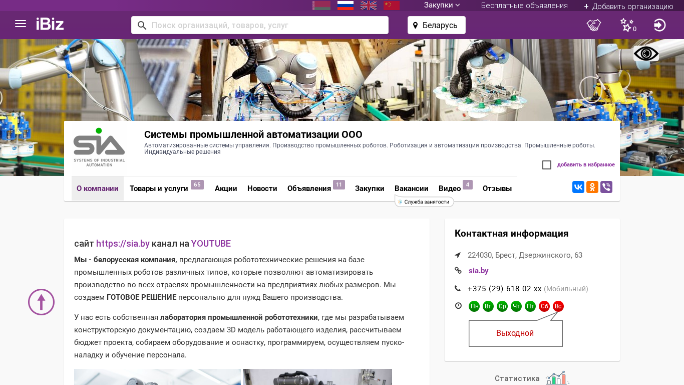 Название / Заголовок | Системы промышленной автоматизации ООО - Автоматизированные системы управления. Производство промышленных роботов. Роботизация и автоматизация производства. Промышленные роботы. Индивидуальные решения . 224030, Брест, , Дзержинского, 63 |