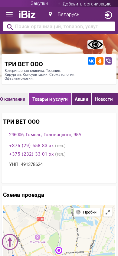 | Название / Заголовок | ТРИ ВЕТ ООО - Ветеринарная клиника. Терапия. Хирургия. Консультации. Стоматология. Офтальмология.. 246006, Гомель, , Головацкого, 95А |