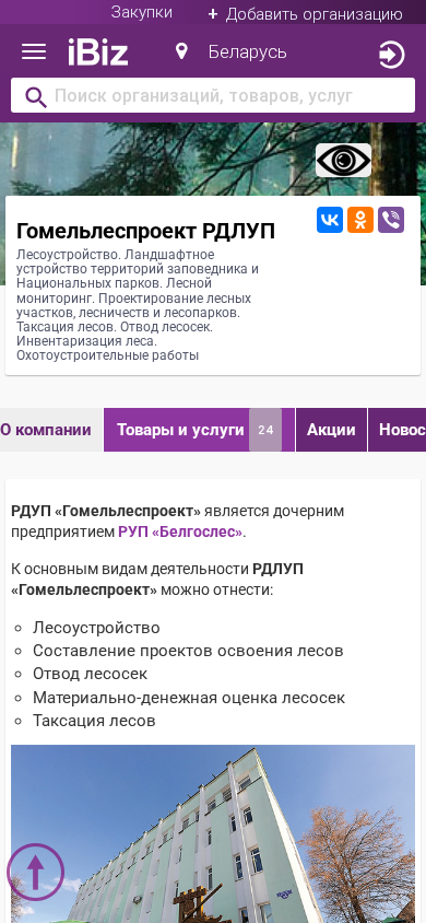 | Название / Заголовок | Гомельлеспроект РДЛУП - Лесоустройство. Ландшафтное устройство территорий заповедника и Национальных парков. Лесной мониторинг. Проектирование лесных участков, лесничеств и лесопарков. Таксация лесов. Отвод лесосек. Инвентаризация леса. Охотоустроительные работы. 246027, Гомель, , 1-я Встречная, 35 |