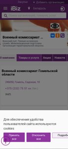 | AI-анализ | This website is the official online presence of the Military Commissariat of the Homel Oblast in Belarus. It provides information related to military enlistment, military record keeping, mobilization preparedness, and organization of territorial defense. The website includes a scheme of access, contact telephone numbers, and address of the Military Commissariat located in Homel, Savaya Street 10. The site also offers free classified ads for purchases and features a search engine for iBiz. The domain is registered to OOO "AIBIZ MEDIA" - the catalog of enterprises and organizations in Belarus. The website operates Monday through Friday from 9:00 AM to 6:00 PM without lunch break and is closed on weekends. The contact information includes a phone number and the company's address. |