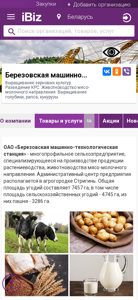 | AI-анализ | The website is for Berezovskaya Machino-Technological Station OAO, a multi-profile agricultural enterprise specializing in the production of agricultural products in the fields of crop farming and livestock farming of the dairy and meat type. The administrative center of the company is located in the agro-village of Stryhyn. The total area of the land is 7457 ha, of which 4745 ha are agricultural lands, including 3286 ha of arable land. The main activities of the enterprise include milk production from dairy cattle, meat production, potato cultivation (varieties 'Scarf', 'Briz' and others), and berry farming (gooseberries and currants). The machinery and tractor park offers a range of agricultural equipment services. The enterprise engages in artificial insemination of cows and leases |