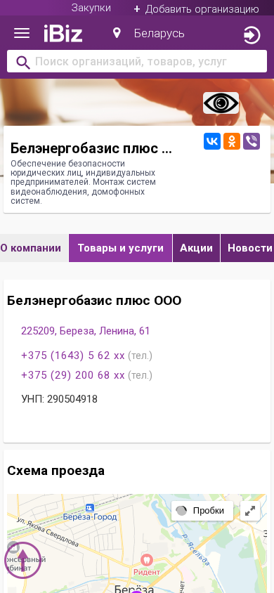 | Название / Заголовок | Белэнергобазис плюс ООО - Обеспечение безопасности юридических лиц, индивидуальных предпринимателей. Монтаж систем видеонаблюдения, домофонных систем.. 225209, Береза, , Ленина, 61 |