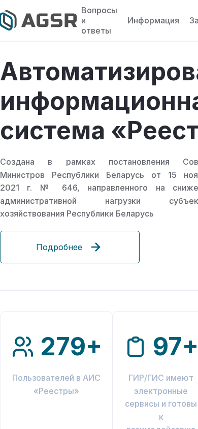 | AI-анализ | --- This online resource, titled "Registers," is a Belarusian information system created in accordance with a 2021 government decree aimed at reducing administrative burden for subjects of Belarusian economy. The system, which has over 279 users, includes automated information systems and databases, with 23 domains classified within it. Users can register by logging in through the Unified System of Identification for physical and legal entities, and then submitting a registration request. The number of users each organization can register is limited by the number stated in the application. The system also includes electronic services and databases, with metadata and reference information filling capacity at varying rates. Users can access FAQs and submit questions within the platform. |