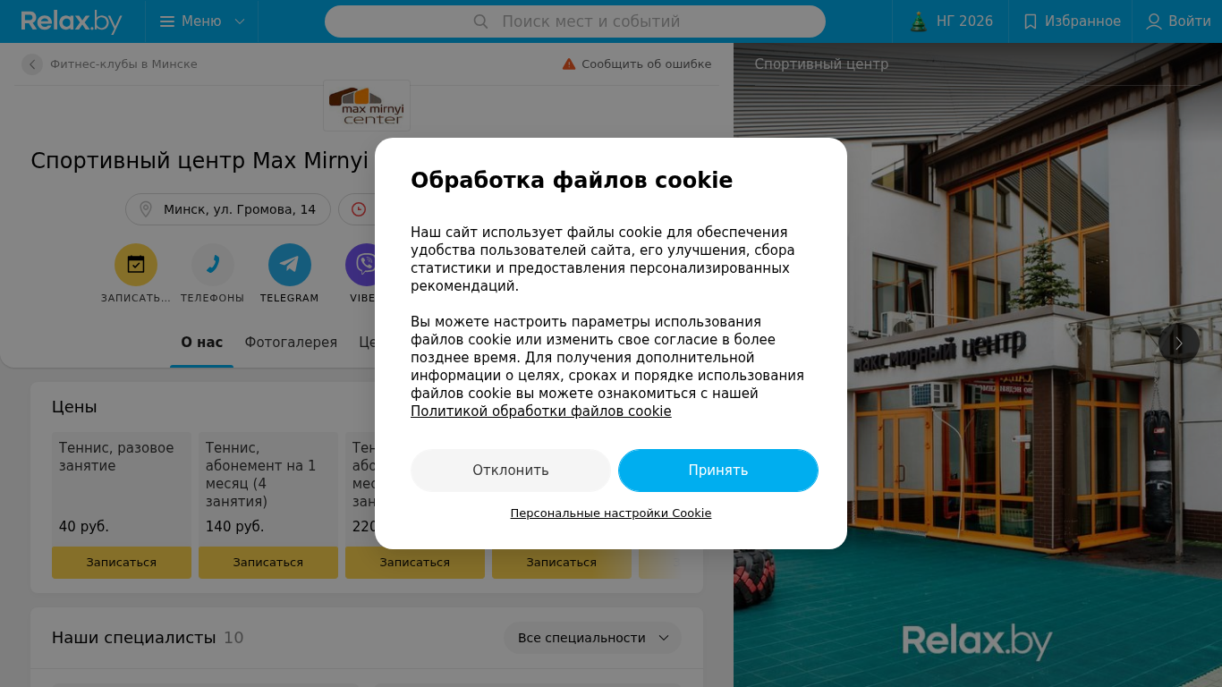 | SEO-описание | Спортивный центр Max Mirnyi Center (Макс Мирный Центр) в Минске – отзывы, телефоны, адрес на карте, график работы и карта проезда на Relax.by |