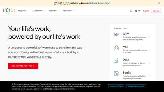 | Название / Заголовок | Zoho | Cloud Software Suite for Businesses |