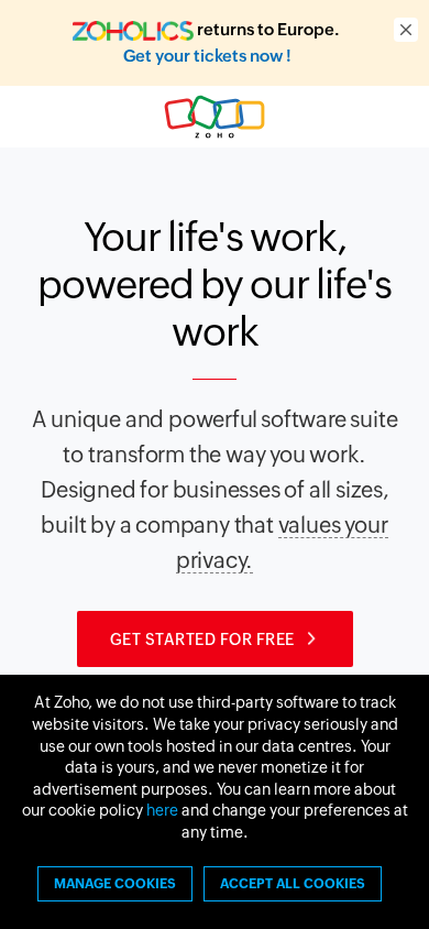 | AI-анализ | country: BY language: EN category: Business Software The website Zoho is a business software suite offering 55+ applications to businesses of all sizes. With over 130 million users, Zoho is a trusted solution for end-to-end business needs. The website is operated by Zoho Corporation and is available in the .BY domain. The website does not use third-party software to track visitors and prioritizes user privacy. It provides options to manage cookie consent for necessary, functional/preference, analytics, and third-party company cookies. |