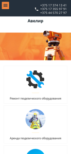 | AI-анализ | The web project "Company Avelir" is an online presence for a Belarusian company specializing in the sale, repair, and calibration of geodesic equipment and measuring instruments. The site offers services for repairing geodesic equipment, renting it out, and selling a range of geodesic instruments, testing equipment, and control instruments. The company also provides services for the repair and maintenance of geodetic and construction levels, as well as electronic levels. The site includes a section for buying used geodetic and construction measuring instruments. Company Avelir has been in operation since 2008. |