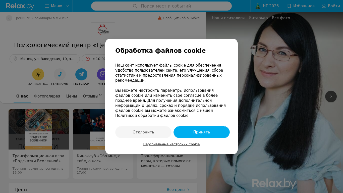 | SEO-описание | Психологический центр Центр успешных отношений в Минске – отзывы, телефоны, график работы и карта проезда на Relax.by |