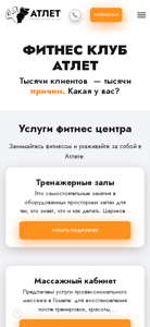| AI-анализ | The web project Atlet is a fitness club located in the center of Homiel, offering equipped sports halls and spa services. The club has three locations: on Gagarina Street, number 57; on Golevtskogo Street, number 136; and on Tsaritsa Avenue, number 20/3-2. The contact numbers for the locations are: +375 (29) 177-13-83 for the Gagarina Street location, +375 (44) 777-91-55 for the Golevtskogo Street location, and +375 (29) 313-98-41 for the Tsaritsa Avenue location. The club offers fitness training rooms for individual workouts, group fitness classes, massage services, beauty treatments, and |