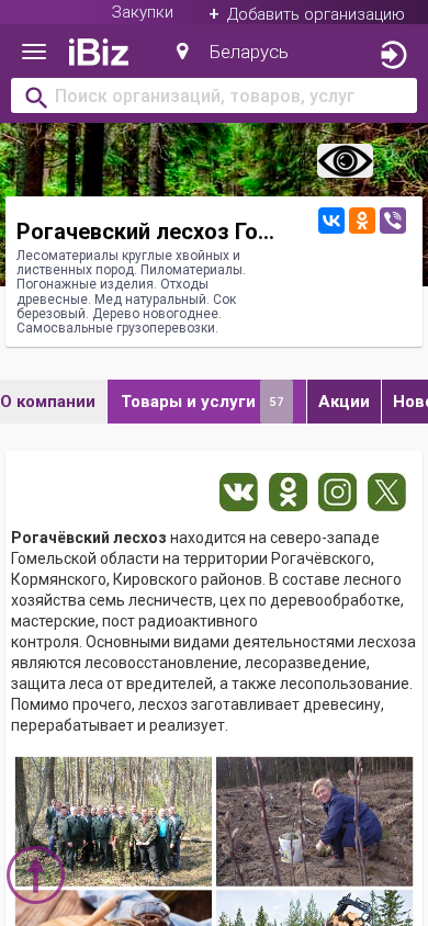 | Название / Заголовок | Рогачевский лесхоз Государственное лесохозяйственное учреждение - Лесоматериалы круглые хвойных и лиственных пород. Пиломатериалы. Погонажные изделия. Отходы древесные. Мед натуральный. Сок березовый. Дерево новогоднее. Самосвальные грузоперевозки.. 247673, Рогачев, , Октябрьская, 21 |
