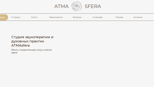 | AI-анализ | This website is a sound therapy and spiritual practices studio named ATMAsfera. The title includes references to gongs, shamanic drums, temple bells, alchemical, Tibetan bowls, and flat cymbals of Zhikharev. The description includes mentions of various events, studio services, and master-related questions, as well as contacts. The top words are "time," "thanks," "sound," "journey," "me," "very," "zsoundtherapy," "session," "studio," "all," "you," "place," "forces," "where," "Borisevich," "bowls," "myself," "place," "services," and "practices." The studio offers individual and group sound therapy sessions using singing bowls and gongs, as well as a shamanic journey practice. The shamanic journey |