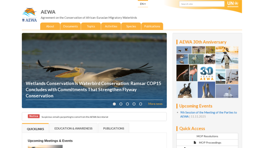 | SEO-описание | The African-Eurasian Migratory Waterbird Agreement (AEWA) is an intergovernmental treaty dedicated to the conservation of migratory waterbirds and their habitats across Africa, Europe, the Middle East, Central Asia, Greenland and the Canadian Archipelago. |