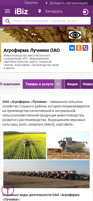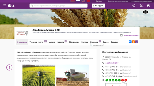 | AI-анализ | The web project "Agrofirmia Luchni OAO" is a farm specializing in livestock production with a focus on meat and dairy cattle breeding. They engage in farming of various crops, including wheat, barley, rye, rapeseed, sugar beets, and potatoes. The farm also produces flour and grains. The company's location is in the agricultural organization "Luchni AH," located at Tsikova, 5A. There is a section for free classified ads for purchases on the website. |