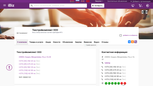 | Название / Заголовок | Техстройкомплект ООО - Весь спектр запасных частей к тракторам МТЗ.. 230003, Гродно, , Менделеева, 31а, к.14, 20 |