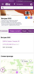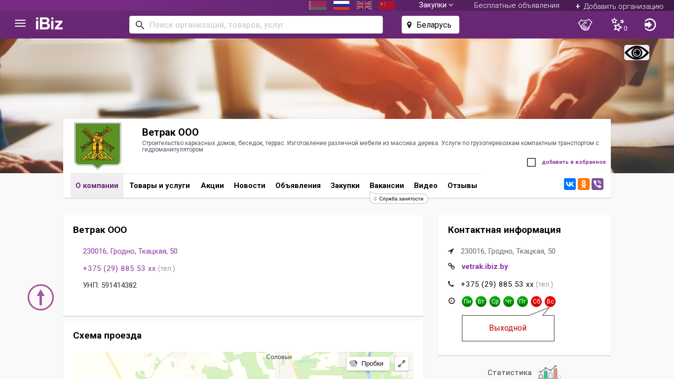 | AI-анализ | This website is for Vetрак OOO, a construction company based in Grodno, Belarus. They specialize in building carpentry structures, such as houses, porches, and terraces, as well as manufacturing various wooden furniture. The company also offers cargo transportation services using compact vehicles equipped with hydraulic manipulators. The website includes a map for directions, contact information, and business hours. Vetрак OOO offers services related to wooden houses, log cabins, and saunas, as well as auto transportation services. The site is in Russian and includes a contact form, news section, and customer reviews on social media. The company's UNP number is 591414382. |