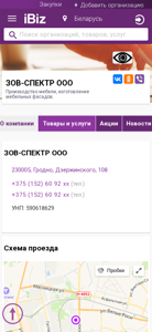 | AI-анализ | This online resource is dedicated to Zov-Spectr OOO, a company based in Grodno, Belarus. The company specializes in the production of furniture and the manufacturing of furniture facades. The website provides contact information, including phone numbers and an address at Дзержинского, 108, 230005. The company's operating hours are listed as Monday to Friday from 10:30 AM to 5:30 PM, with Saturdays and Sundays being closed. The website also features a map for visitors to plan their route. |