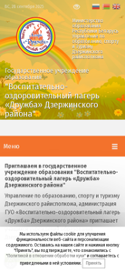 | AI-анализ | This online resource is a website for the educational and rehabilitative camp "Druzhba" in Dzerzhinsky district, Belarus. The title of the website is given in Belarusian language as "ГУО «Воспитательно-оздоровительный лагерь «Дружба» Дзержинского района»" which translates to "State Educational Institution 'Rehabilitation and Health Camp 'Druzhba' of Dzerzhinsky district". The description of the website contains keywords related to the camp, its location, Belarusian language, and education. The top words include 'detailed information', '2025', 'Dzerzhinsky region', 'Belarusian', 'rehabilitation and health camp', 'news', and 'August'. The website appears to provide information about the camp, possibly including |