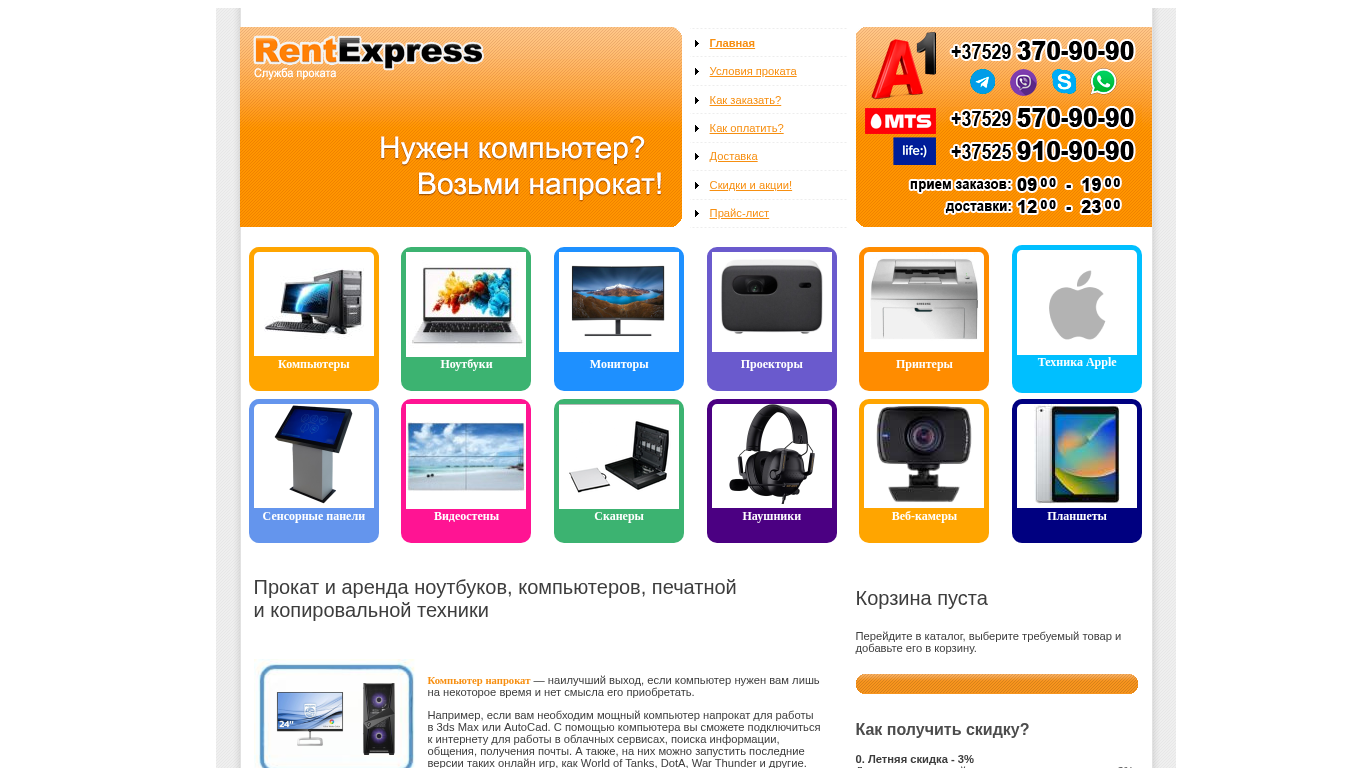 | SEO-описание | Ноутбуки, планшеты, нетбуки и компьютеры напрокат в Минске с доставкой. Аренда, прокат принтеров, МФУ, сканеров, проекторов, экранов, ЖК телевизоров, игровых консолей. |