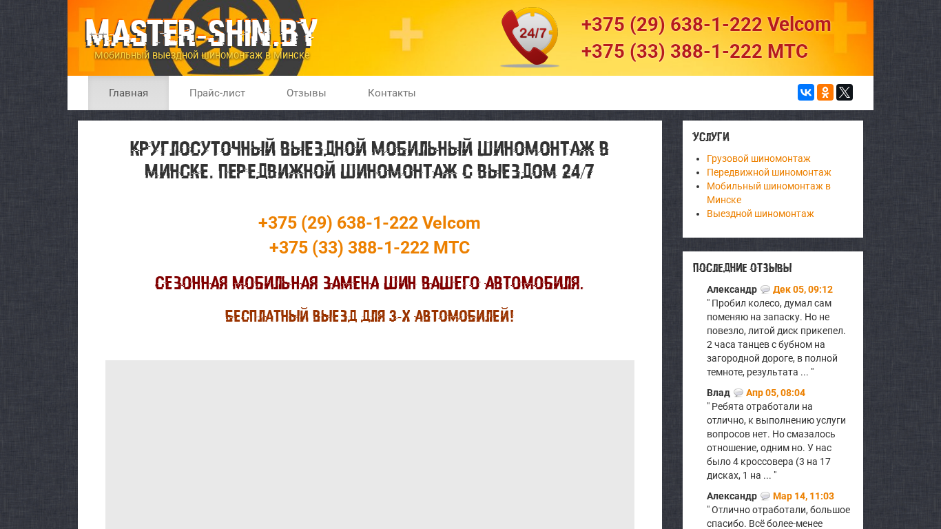 Название / Заголовок | Выездной передвижной шиномонтаж в Минске, круглосуточный мобильный шиномонтаж с выездом 24/7 |