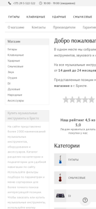 | SEO-описание | Продажа музыкальных инструментов, оборудования и аксессуаров ✅ +1000 товаров в наличии ✅ Гарантия ✅ Скидки, рассрочка ✅ Доставка по Беларуси, магазин в Бресте. |
