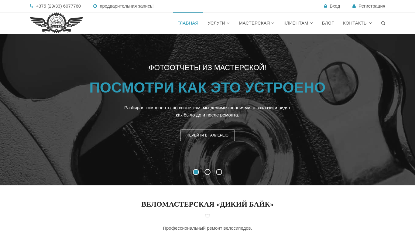 | SEO-описание | Веломастерская Дикий Байк. Профессиональный ремонт велосипедов. Собственный склад запчастей. |