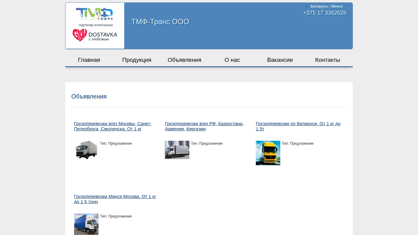 | SEO-лексика | тмф-транс ооо грузоперевозки тип предложение грузов главная объявления нас беларусь минск 375 3362626 продукция новости вакансии контакты казахстана армении киргизии |