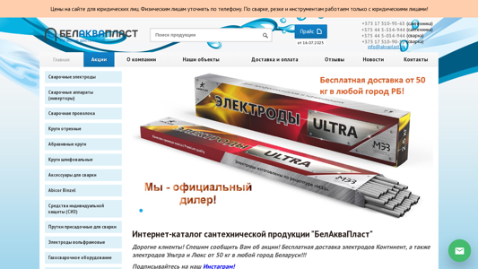 | AI-анализ | This website is an e-commerce platform for purchasing pipes and related products in Belarus. The title suggests buying pipes in Minsk at affordable prices, with options for wholesale purchases and delivery across Belarus. The description emphasizes the availability of competitive prices for piping systems, both wholesale and retail, and the provision of delivery services. The top words indicate a focus on pipe-related products, including swaging tools, fittings, and solder, as well as splicing and welding equipment and consumables. The unp fragment suggests that the company caters specifically to business clients for solder and welding equipment, while physical individuals should contact for pricing. The contact information provided includes several phone numbers and an email address. The website appears to offer a catalog of products, including various types of solder, welding equipment, and related accessories. The domain name suggests a connection to plastics |