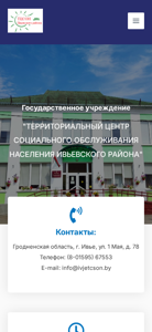 | AI-анализ | This online resource is the official website for the Territorial Center for Social Services of the Population of Ivievsky District in Belarus. The website runs on the WordPress platform and includes information about the center's departments, services, and administrative procedures. Keywords associated with the website include "news," "elbrus03," "read more," "further," "years," "citizens," "offices," "residence," "senior citizens," "disabled," and "support." The main menu consists of sections for the center's departments, including the primary reception, social assistance at home, social rehabilitation and ability enhancement for disabled individuals, round-the-clock residence for the elderly and disabled, and daytime residence for the elderly and comprehensive support in crisis situations. The website also includes sections for administrative procedures, contact information, and news. The contact details for the center are provided |
