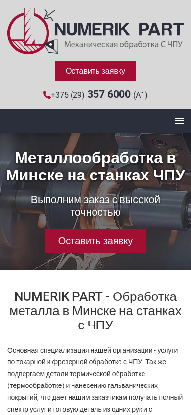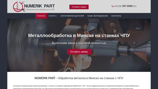 | Название / Заголовок | Металлообработка в Минске на станках с ЧПУ от Numerik Part |