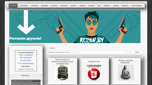 | SEO-описание | Магазин, где можно купить пневматический пистолет, винтовки, запчасти. Рыболовные товары, средства самообороны, спецсредства, цены, продажа в Минске с доставкой. |