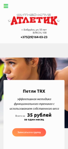 | SEO-описание | Современный тренажерный зал для мужчин в Бобруйске: лучшие тренера, новейшее оборудование. Эффективные тренировки для похудения девушек в фитнес-клубе «Атлетик». |