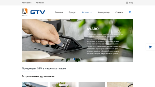| AI-анализ | The web project 'GTV – электроустановочные изделия ГТВ' is an online catalog for electrical fitting products from Polish company GTV, available in Minsk for both wholesale and retail purchases. The website features a menu with solutions, products, and a catalog, as well as options for bezprozdny zaryadnyh ustroystv (wireless charging devices), udliniteli (extension cords), and rozetochnye blokhi (power outlets). Keywords include avaro, plus, camino charger, comfort, and gtv. The top words are avaro, udliniteli, plus, rozetochnyy, and bлок. The website offers a variety of electrical products such as bezprozdnye zaryadnoye ustroystvo pod stolnitsu |