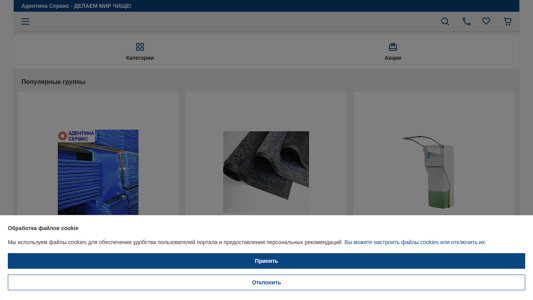 | AI-анализ | This website is for the company "Адентина Сервис - ДЕЛАЕМ МИР ЧИЩЕ!" which offers contact information, products, and services. The website features categories for actions, popular groups, including dezkovricis, dezbarriers, dezmats, lippymultilayerdezkovricis from Kleen-Tex, greaseproof woollen carpets on a resin base, dispensers, hand dryers, and cleaning and disinfectant solutions. Top sellers include Septonic, a bacterial additive for septic tanks, priced at 15 rubles per pack, and a septic tank cleaner, also priced at 15 rubles per pack. Other top sellers are a biodegradable septic tank cleaner, a biodegradable toilet cleaner, and a biode |