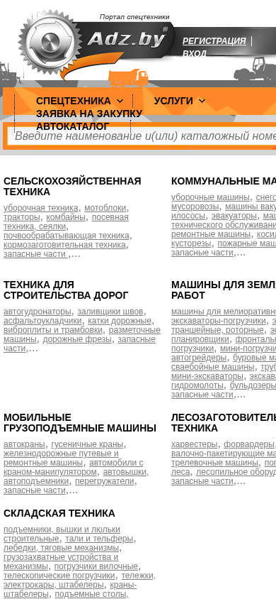 | SEO-описание | Портал спецтехники Adz.by. Спецтехника, запчасти в Минске и Беларуси. |
