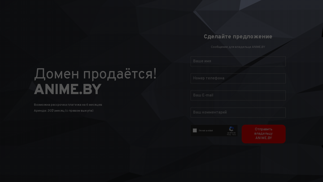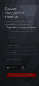 This website, titled "ANIME.BY" and identified by the domain name "anime.by," is the official website for ANIME.BY. According to the provided data, the site's description includes the phrase "official website." The top keywords for this site are "anime," "domain," "прода" (sale), "ствоит" (exists), "возможна" (possible), "рассрочка" (installment), "платежа" (payment), "месяцев" (months), "аренда" (rent), "месяц" (month), "правом" (right), "выкупа" (purchase), "сделайте" (make), "предложение" (offer), "сообщение" (message), "владельца" (owner), "отправить" (